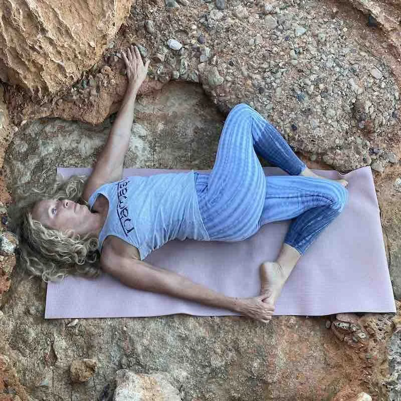 En position allongée, nous commençons avec une rotation de conscience puis en état de “sommeil yoguique” , relaxation profonde consciente et guidée